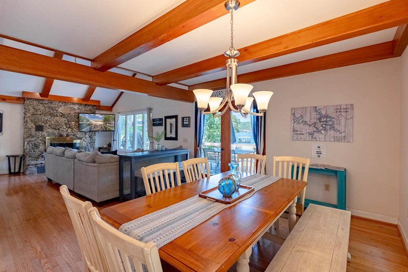 As you step into this charming 4-bedroom, 3-bathroom lakefront retreat, you'll feel an instant sense of relaxation. The open-concept living space greets you with stunning views of the lake, a perfect backdrop for cozy mornings with coffee or late-night chats around the fire. With sleeping accommodations for up to 12, there's room for everyone—whether you're planning a quiet family retreat or a weekend with friends.